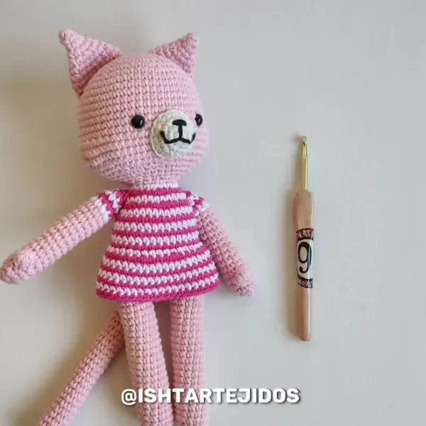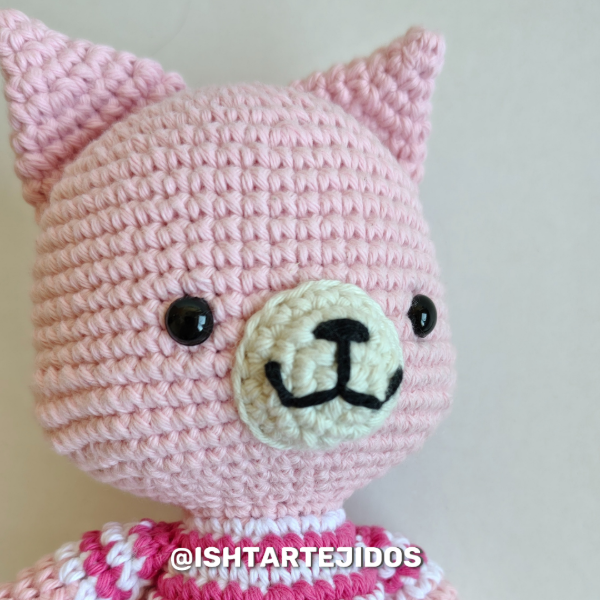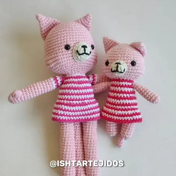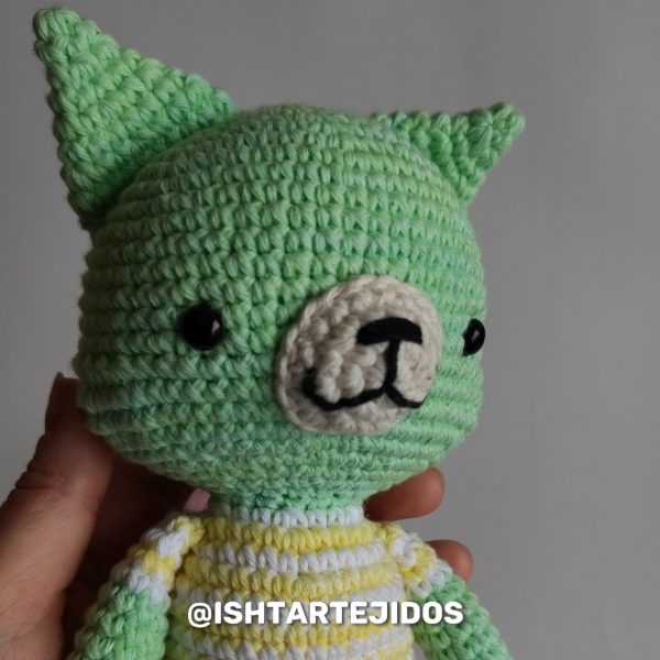 ¿Buscas personalizarlo con colores específicos? ¡Estamos encantados de ayudarte! Contáctanos a través de nuestras redes sociales en Instagram o Facebook, o envíanos un correo electrónico a hola@ishtartejidos.com.ar. También puedes comunicarte con nosotros por WhatsApp al 291 520 4968. Si buscas un gatito más pequeño, te invitamos a pasar por este artículo en nuestra tienda.